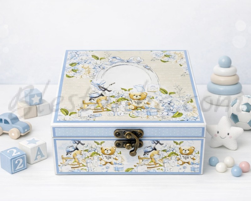 Baby`s Memories Box " Teddy bear": a box for the fisrt treasure of a baby /first hair, umbilical cord, first jewel, etc./.