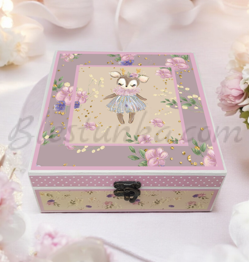 Caja para los tesoros del bebé "Corzo pequeño": caja para los primeros tesoros del bebé /primer pelo, cordón umbilical, primera joya, etc./.